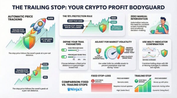 Trailing Stop Loss by Ninja X, Crypto Trading Specialists Providing insightful support to crypto trading enthusiasts globally for over a decade. NinjaX delivers in-depth understanding of trailing stops and their vital importance in managing crypto trading risks and securing profits during price fluctuations. Mastering Trailing Stops: Key Definitions and Principles for Traders What is the … Continue reading Trailing Stop in Crypto Trading: Understanding the Basics